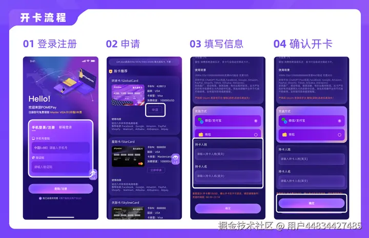 按照下图流程走即可开卡成功↓ 非常非常简单,推荐5437开头的mastercard,支持的网站多些