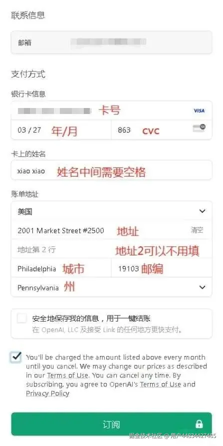 再把刚刚CVC里面的信息填写进来就能开通成功啦!
