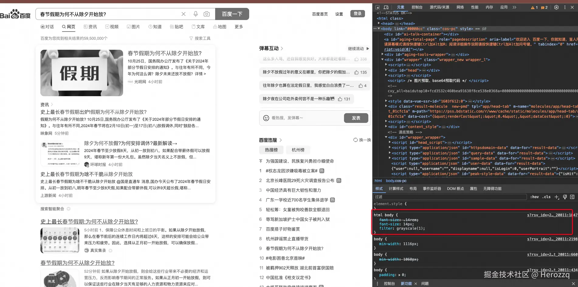此外一些C端的网站在一些特殊的纪念日可以直接在整个网页的body上加grayscale属性非常简便的实现全网页置灰的效果,如下所示