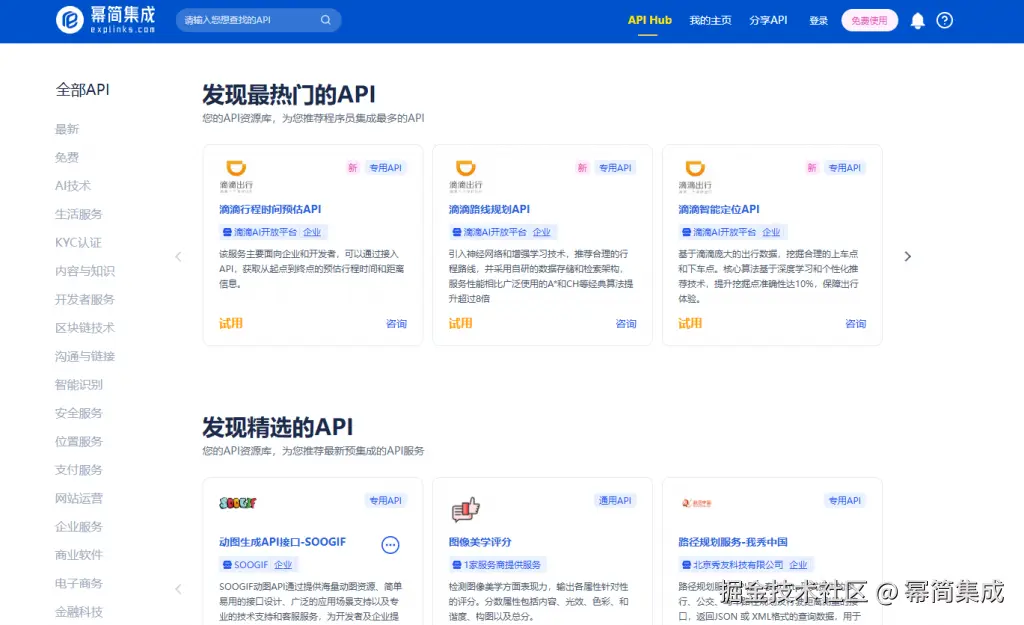 每个平台都有其独特的优势和适用场景,开发者可以根据自身需求选择最合适的API平台,从而加速产品开发和创新。总的来说,无论是RapidAPI、聚合数据、API云市场还是幂简集成,这些平台都通过提供多样化的API资源,帮助开发者和企业实现快速的技术整合和业务扩展。