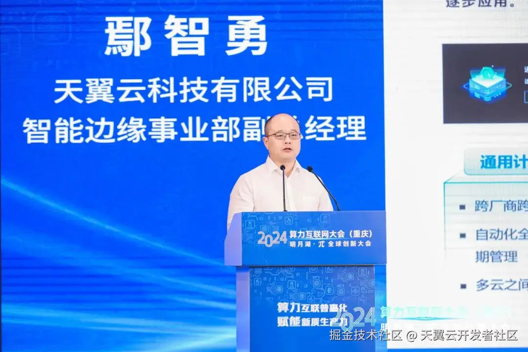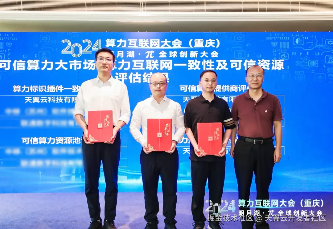 在算力互联网调度与应用专题论坛上,天翼云荣获中国信息通信研究院颁发的“可信算力提供商检验证书”“算力标识插件一致性检验证书”“算力资源接入一致性检验证书”,满足算力互联网一致性要求,代表了天翼云在算力服务标准化、资源服务可信度、互联服务可靠性和调度服务精准性方面获得权威认可,天翼云科技有限公司智能边缘事业部副总经理鄢智勇出席颁奖仪式。