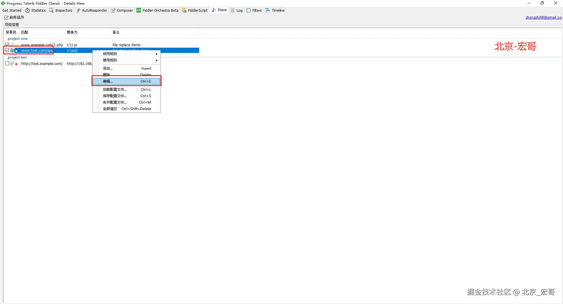 这款插件宏哥在讲解和介绍Fiddler的精选插件部分就已经重点介绍过了,这里就不做赘述了,宏哥这里直接演示如何使用,具体操作步骤如下: