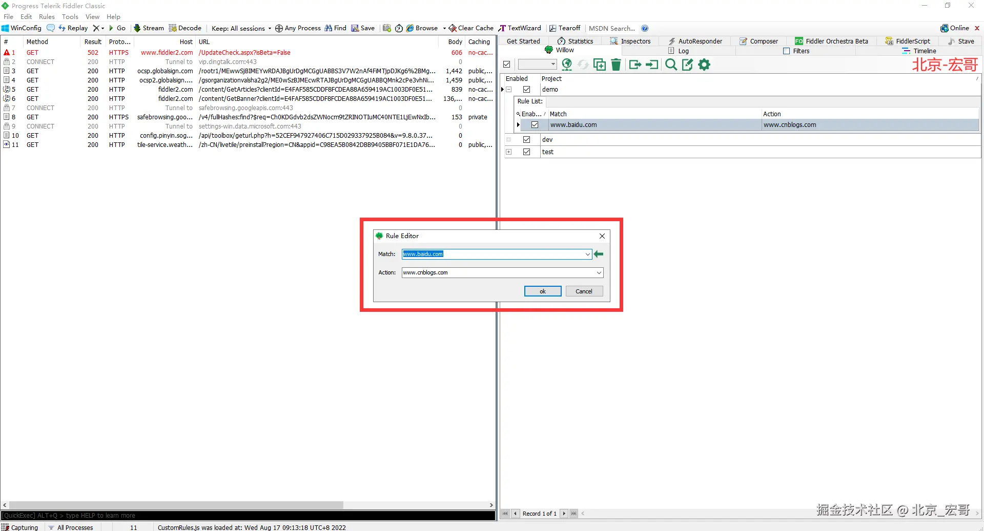 可以看到如上配置,我们回归今天文章的主题先来实践下吧!例如:还是要将百度首页的切换成博客园首页,具体操作步骤如下: