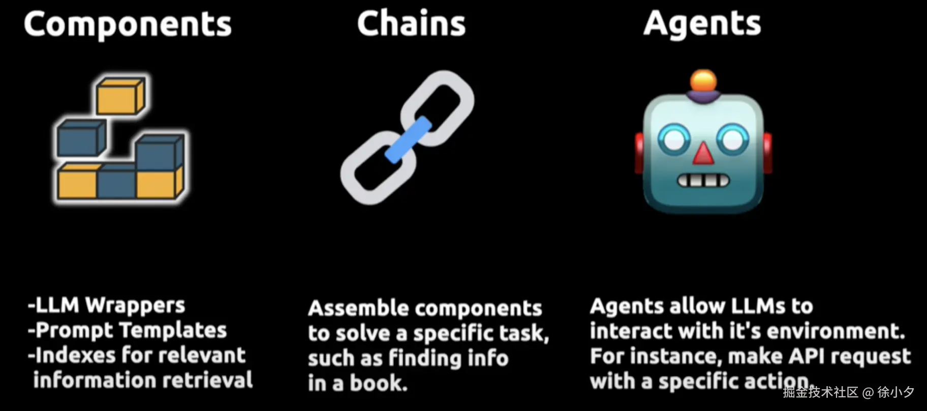- Agents“代理”: 它们使得LLMs能够与外部环境进行交互,例如通过