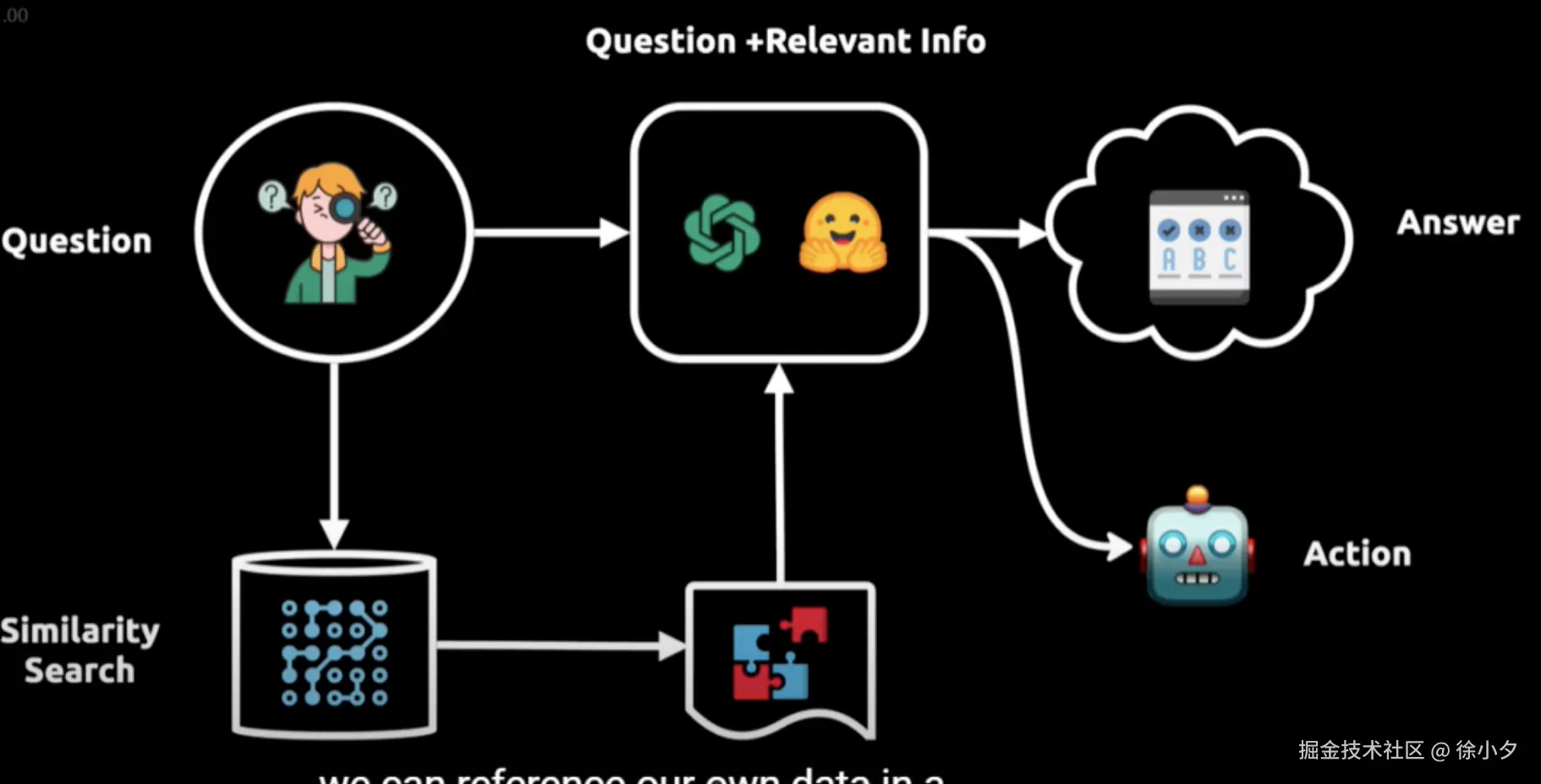 - 生成答案或执行操作:语言模型结合初始问题和相关信息,提供答案或执行相应操作。
