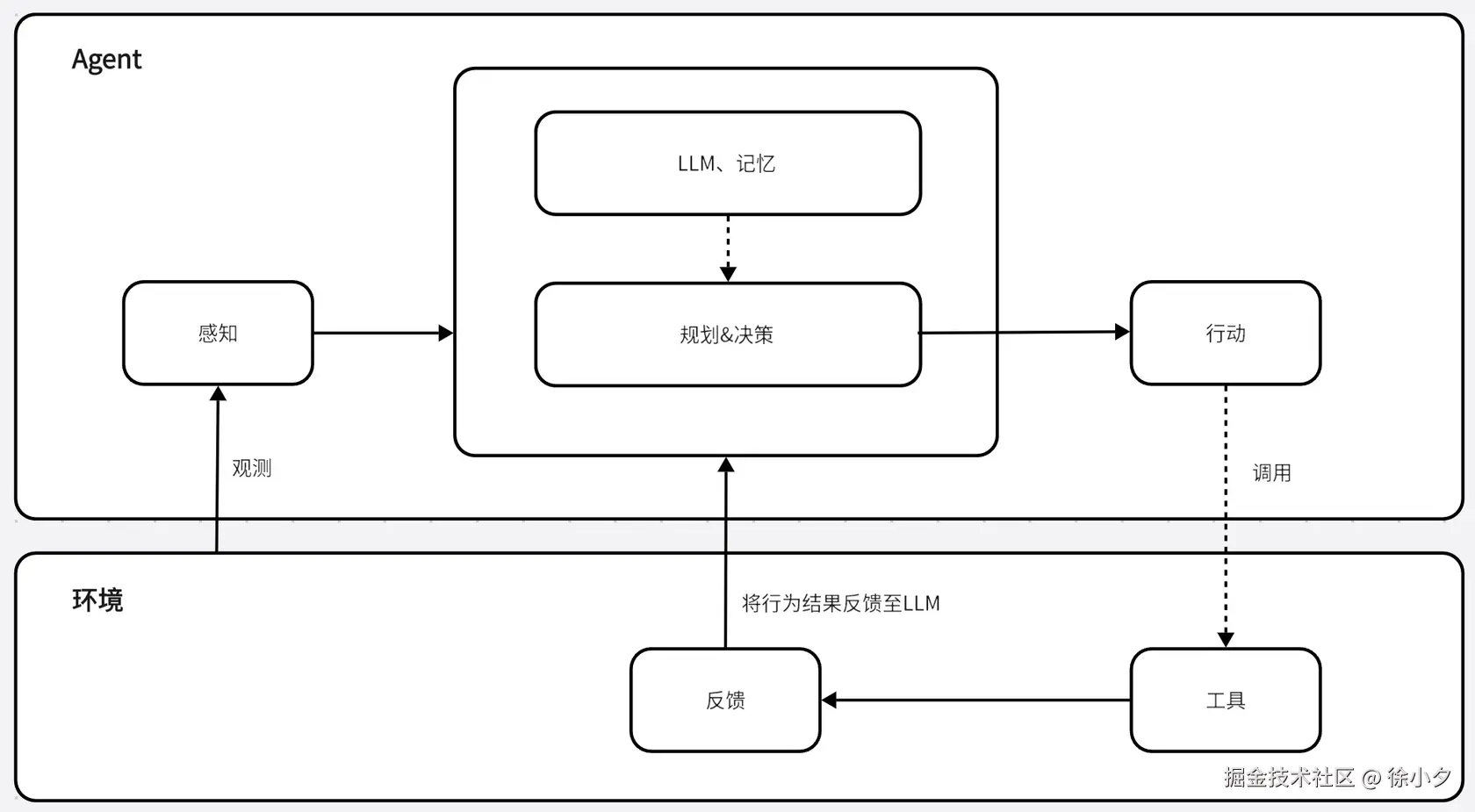 大白话来说就是一种能自主实现目标的“个体”. 类似如下流程: