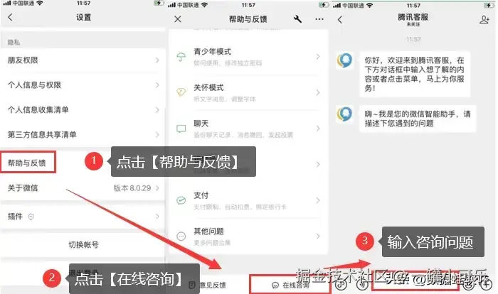 还有一个较为保守地方法就是,直接向微信客服求助。微信客服的反馈较为详细,只要您能清楚地描述需要解决的问题,微信客服会提供一个详细的步骤帮您解决恢复聊天记录的问题。下面就是具体的解决步骤。