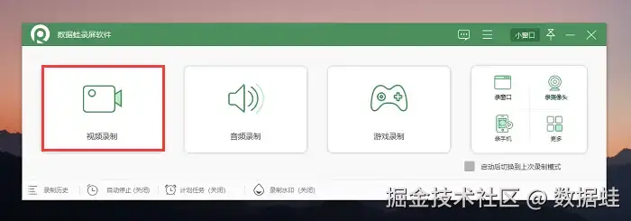 步骤1:前往数据 蛙官网下载最新版本的录屏软件,安装完成后,启动软件。在软件主界面中,选择适合你的录制模式。对于PPT录制,推荐使用 “视频录制” 模式。