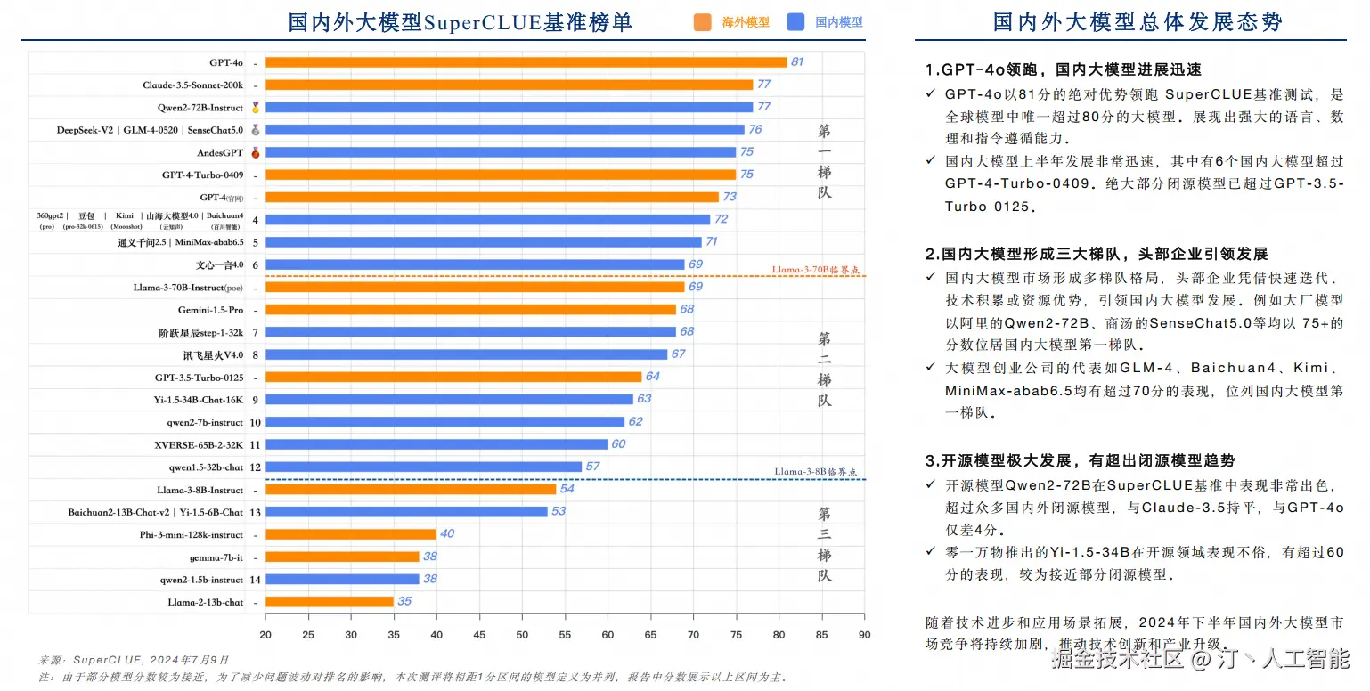 自2023年5月以来,全球及中国国内的大模型技术均展现出了强劲的发展势头,尤其是以GPT系列为代表的海外顶尖模型,历经了从GPT3.5到GPT4、GPT4-Turbo乃至GPT4o的多次迭代飞跃,持续推动AI技术的边界。与此同时,中国本土的大模型领域也经历了长达14个月的激烈竞争与快速进化,期间顶尖模型之位更迭了八次,彰显出国内技术实力的显著提升与不懈追求。