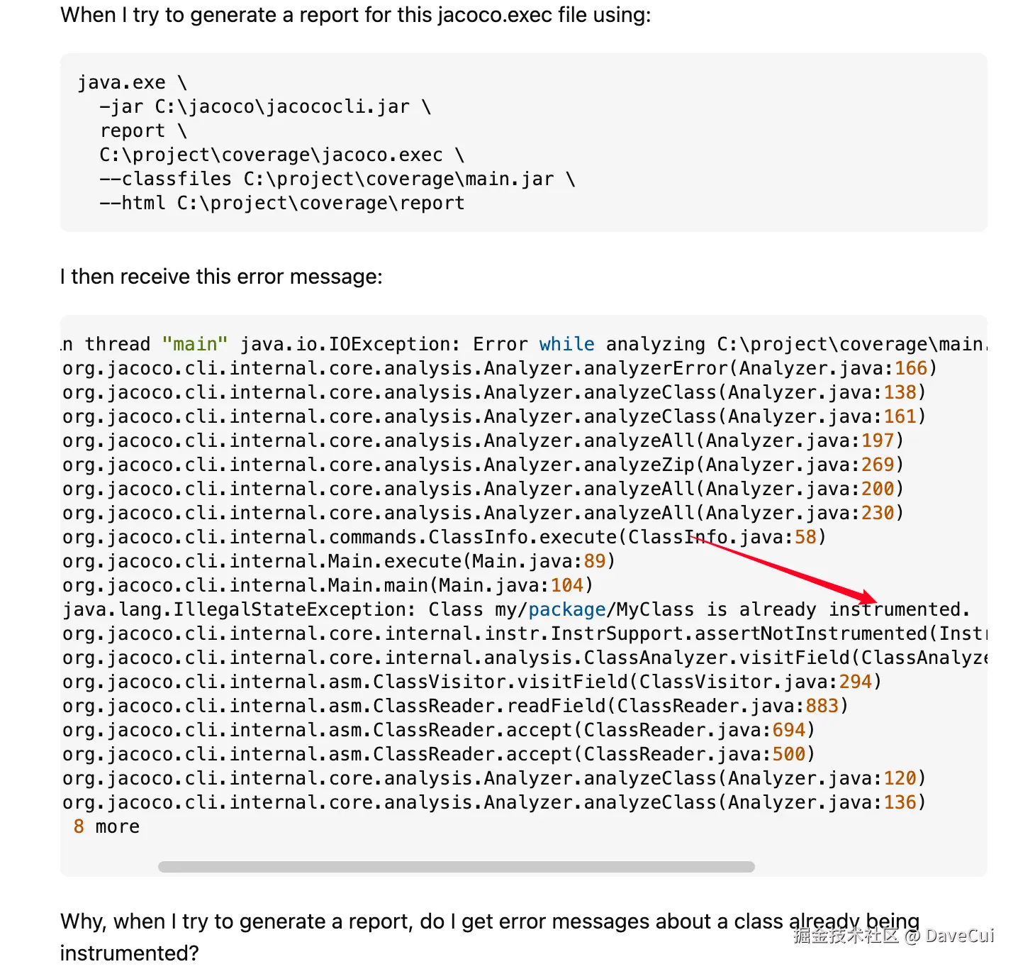 我一开始以为是我的某个类写的有问题,导致的重复instrumented。但是多次执行下来,我发现报错的类并不是总是同一个。