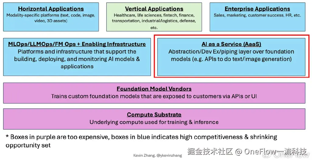 本文中,作者将深入探讨AaaS(人工智能即服务)初创公司,并特别关注AI推理(inference)初创公司(见下文红框)。本文主要内容如下: