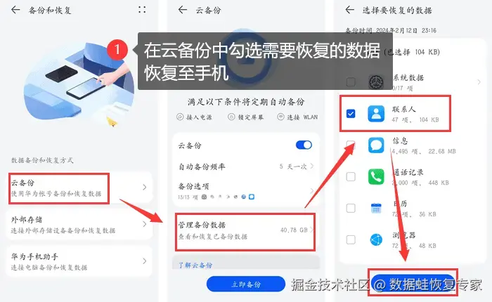 步骤2:查看云备份的数据,将需要恢复的数据重新下载回手机即可。