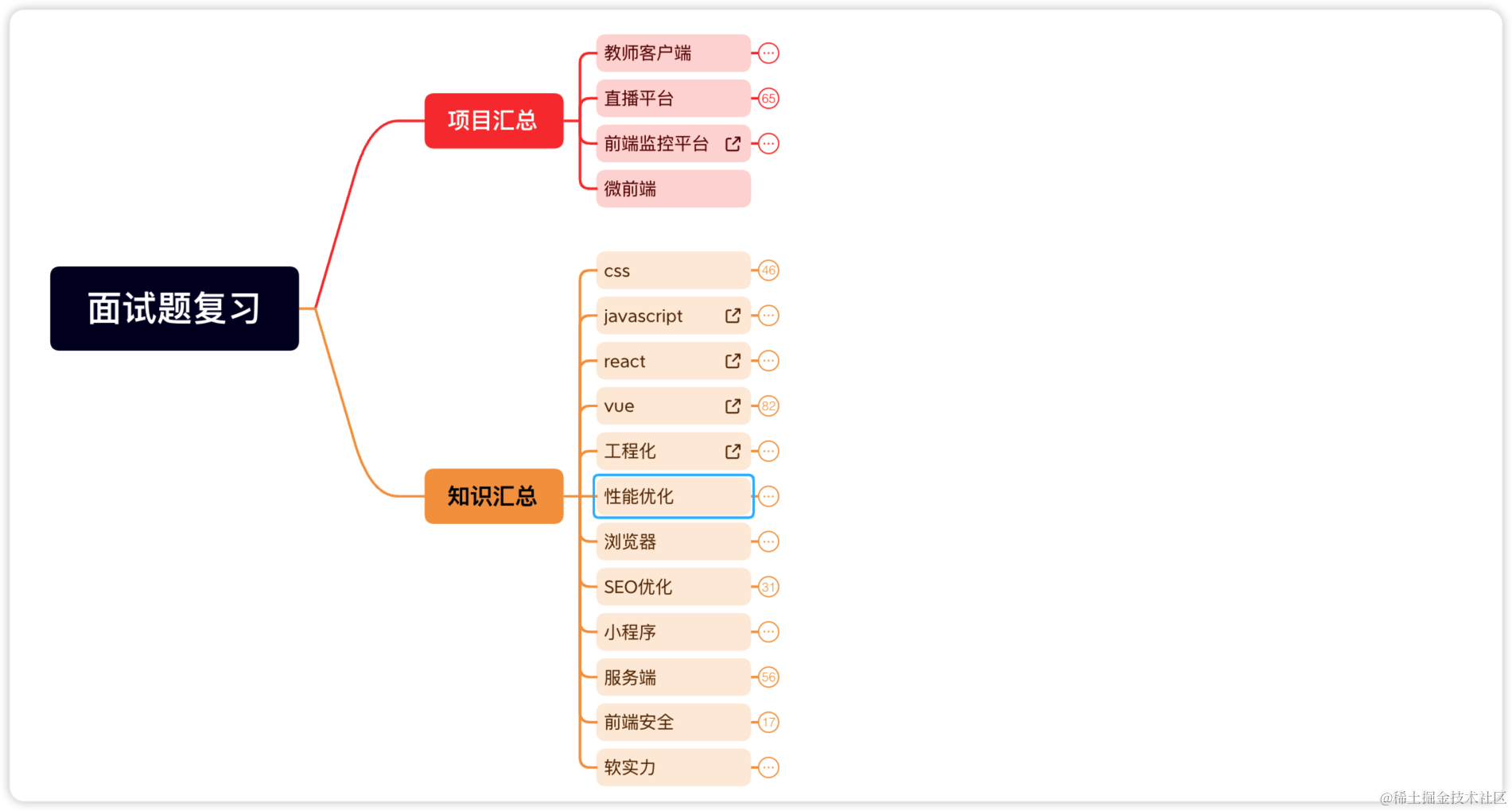 我会根据自身的简历内容和技术栈挑一些主要的进行分类,然后总结成一个思维导图,记录关键词,方便记忆。