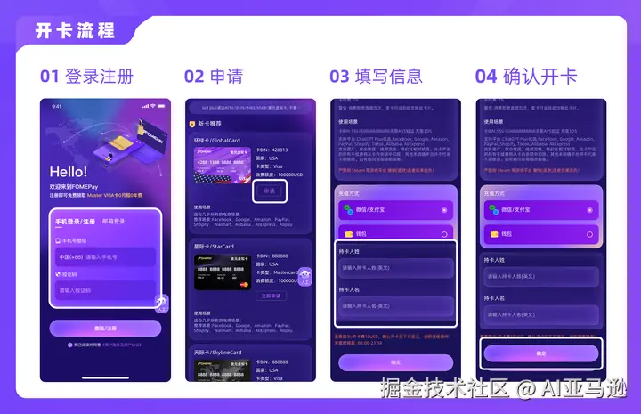 同时由于不是实名认证的卡。不建议大家往里面充太多钱,纯粹作为搭桥支付就行了。 一. 如何开通虚拟卡