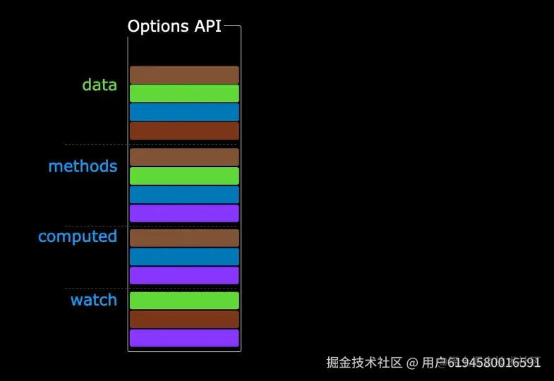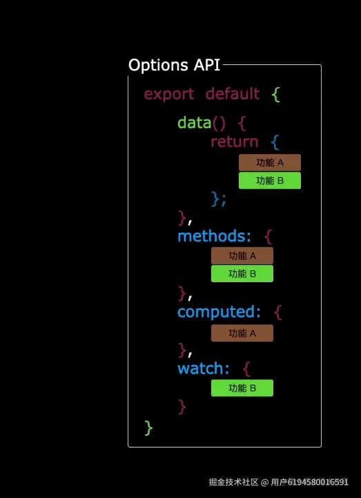 我们在Vue2中常常会需要在特定的区域(data,methods,watch,computed...)编写负责相同功能的代码。随着业务复杂度越来越高,代码量会不断的加大;由于相关业务的代码需要遵循option的配置写到特定的区域,导致后续维护非常的复杂,代码可复用性也不高。同一逻辑被分割;代码量多时,反复横跳,开发体验差;mixin命名冲突