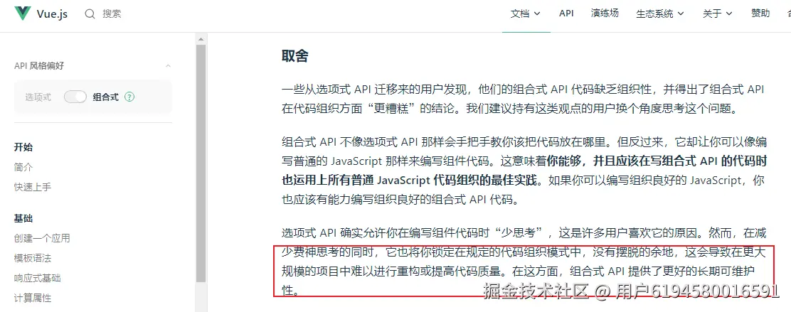 选项式 API 确实允许你在编写组件代码时“少思考”,这是许多用户喜欢它的原因。然而,在减少费神思考的同时,它也将你锁定在规定的代码组织模式中,没有摆脱的余地,这会导致在更大规模的项目中难以进行重构或提高代码质量。在这方面,组合式 API 提供了更好的长期可维护性。