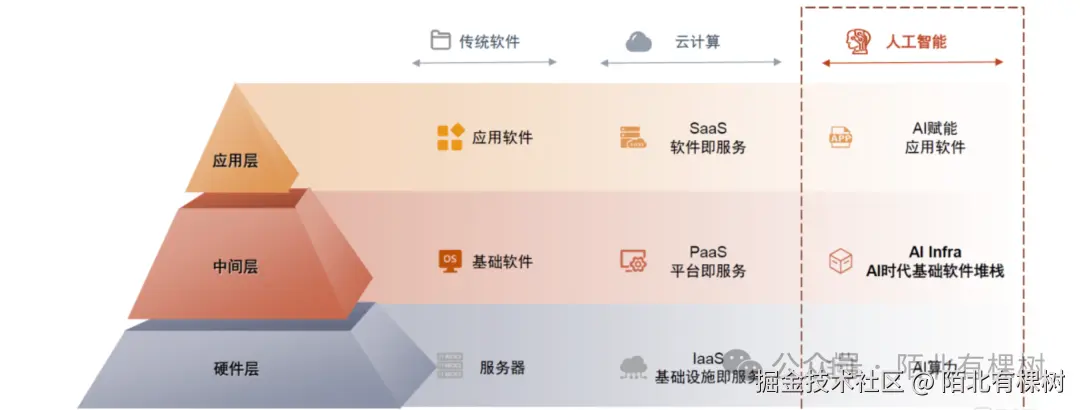 我们在学习的时候,既要从上到下,同时也要从下到上,大模型能够run起来,离不开底层的基础设施建设和开发框架的完善,这个完全可以用互联网时代做个类比,如果没有云计算的普及、Java开发生态的繁荣,把应用门槛打下来,怎么能支持那么多商业模式上的创新?