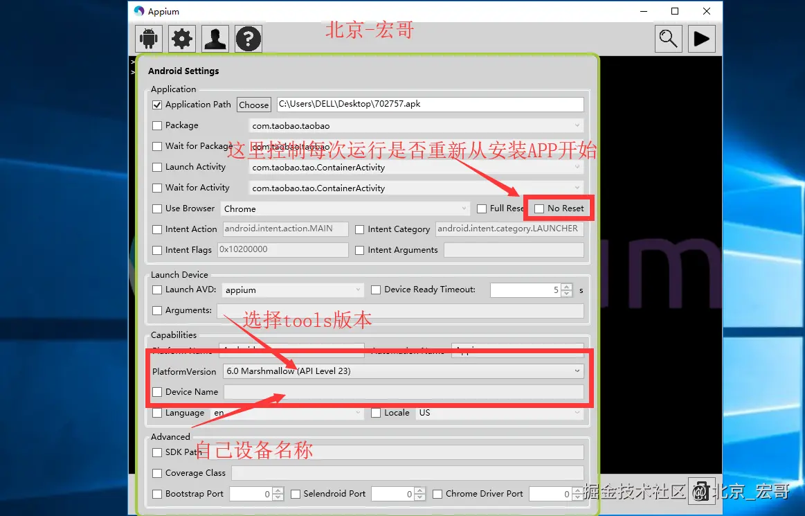 2)将上方获取到的真机的deviceName填入 ,选择platformName和platformVersion
