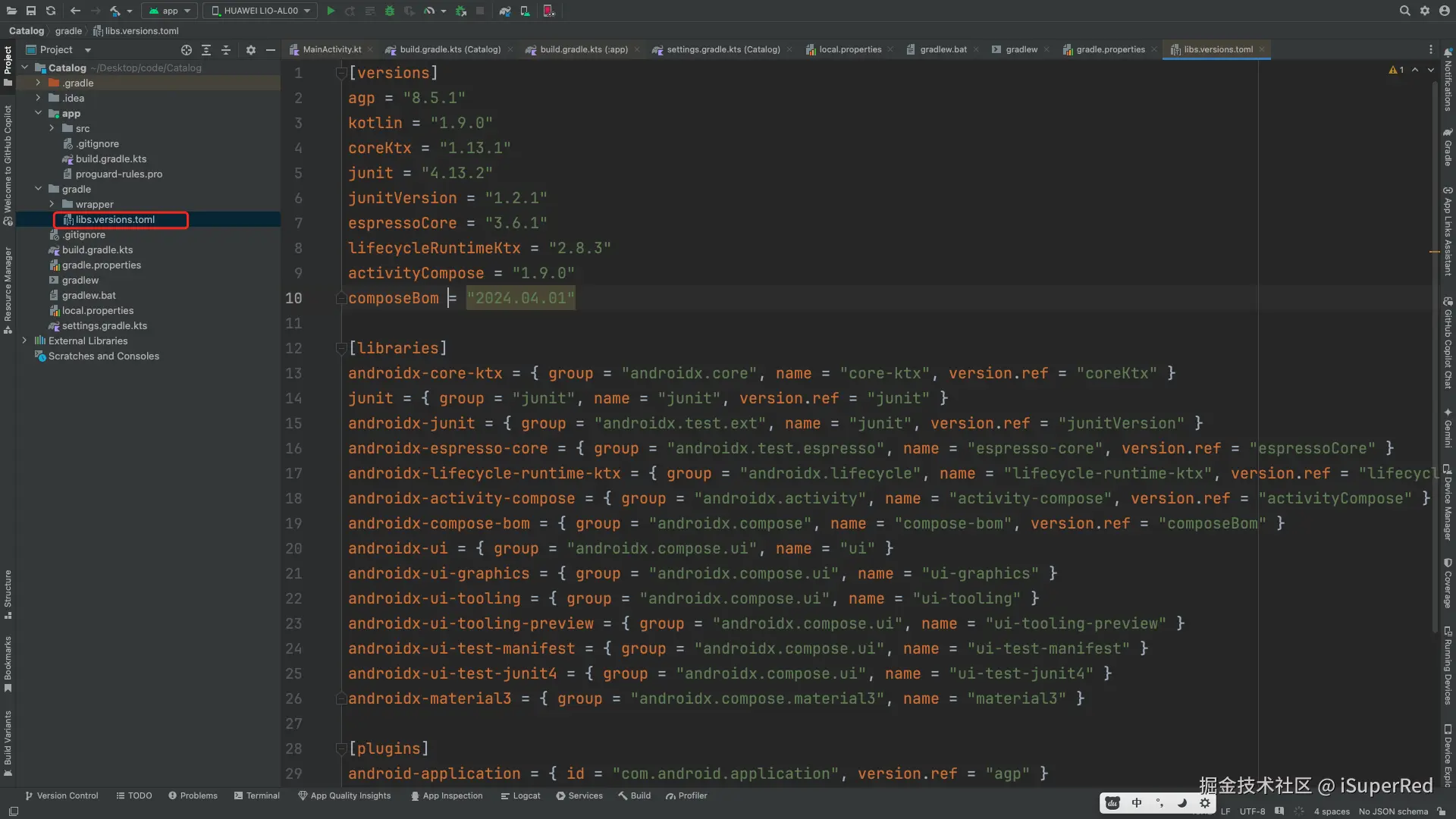 我现在使用的 Android Studio Koala,在新建项目时默认就使用了 Version Catalog 来管理依赖。官方推荐的依赖库管理方案,值得信赖!