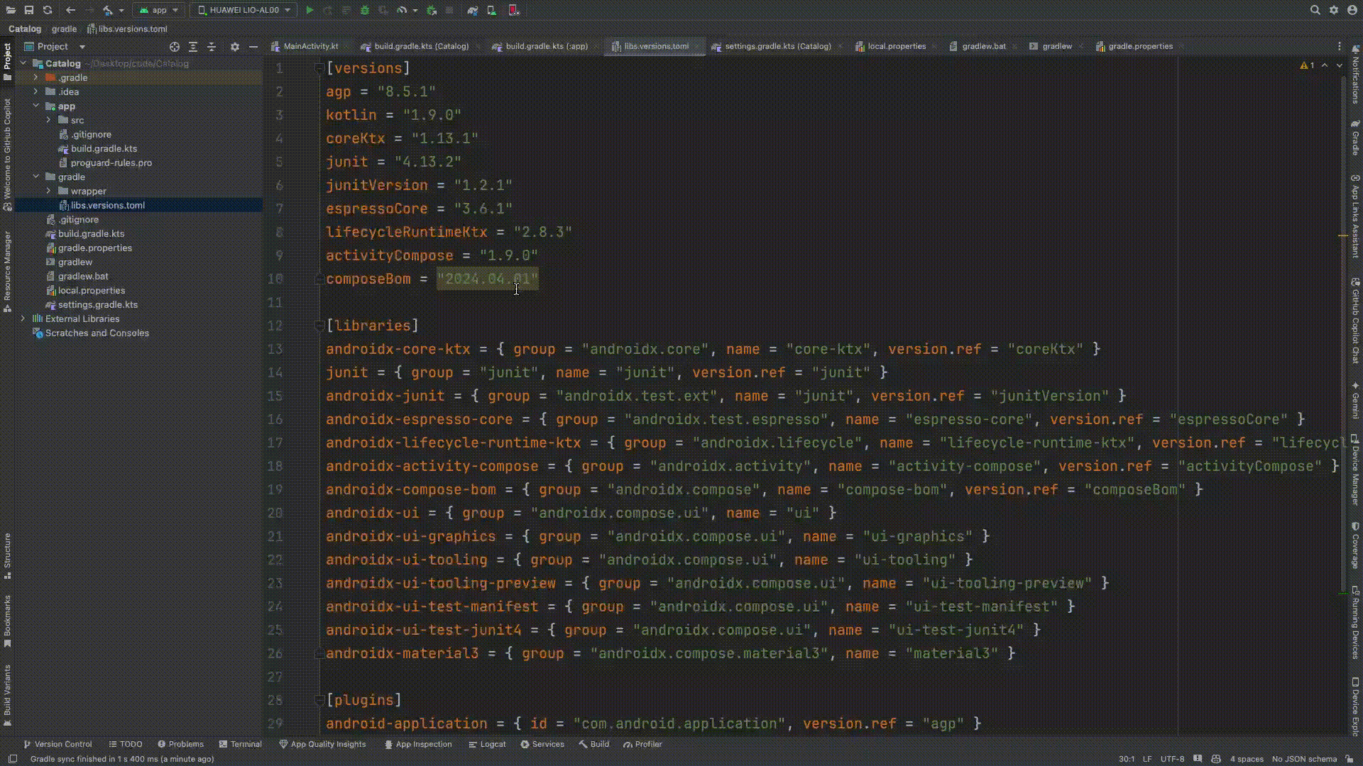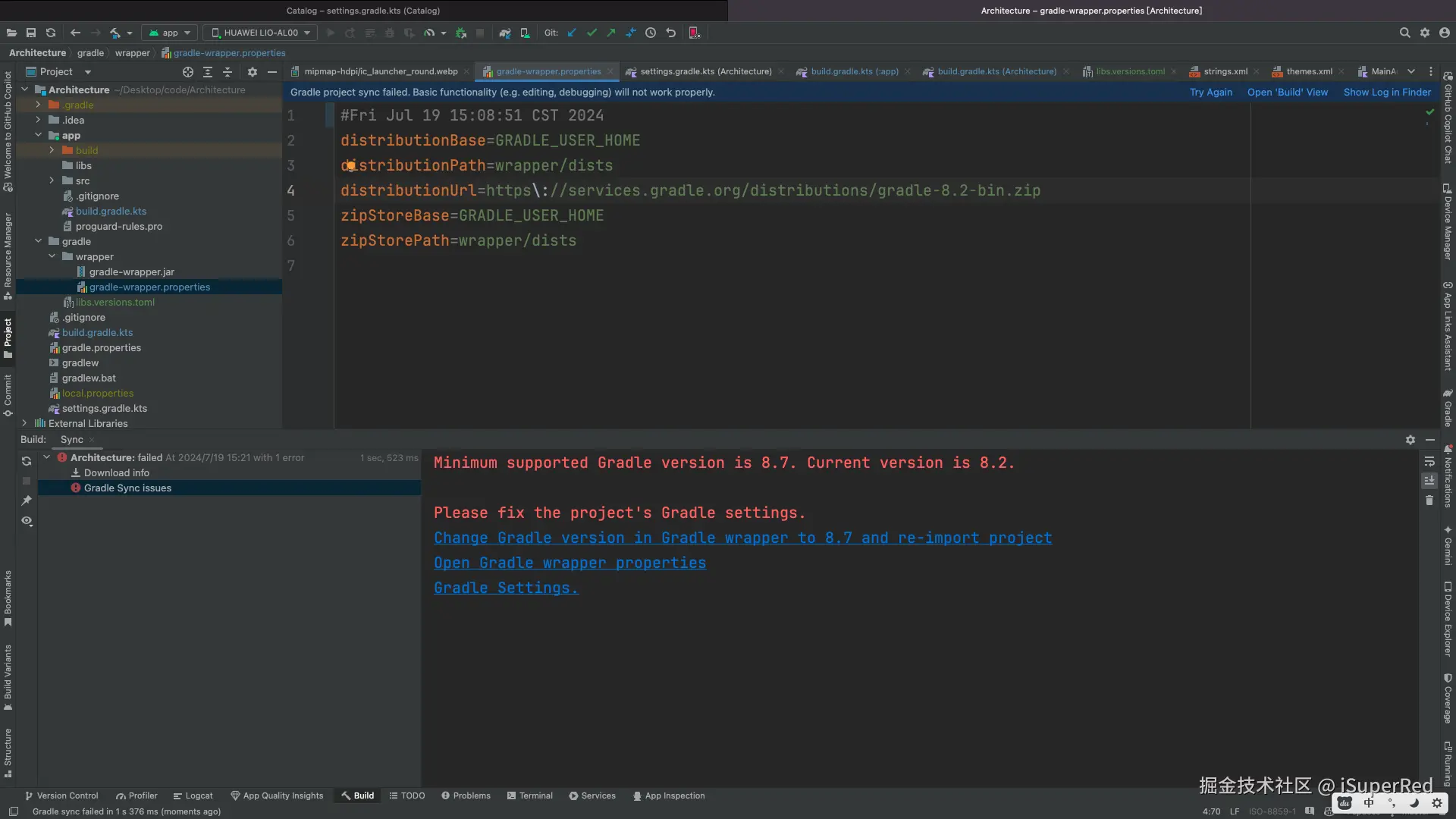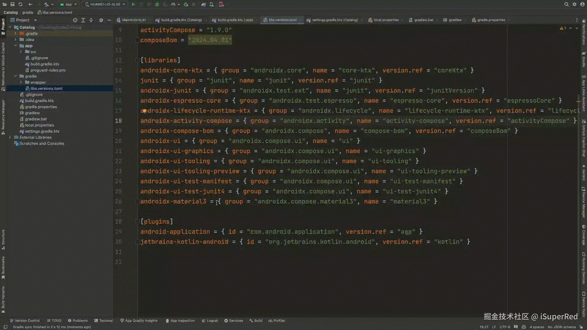 同步完成后,Version Catalog 就会被应用到我们的项目中。在同步项目时,可能会遇到 Gradle 版本不支持的问题,这时需要升级 Gradle 版本。