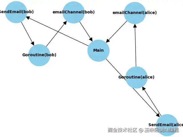 - EmailChannel (alice) / emailChannel (bob):通过 channel 接收消息并返回给主函数。
