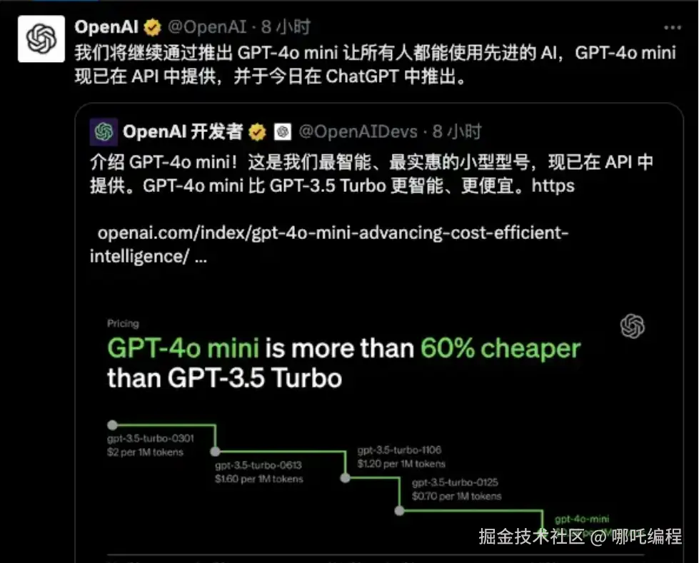7月18日,OpenAI宣布推出GPT-4o mini,一个极具成本效益的小型模型。