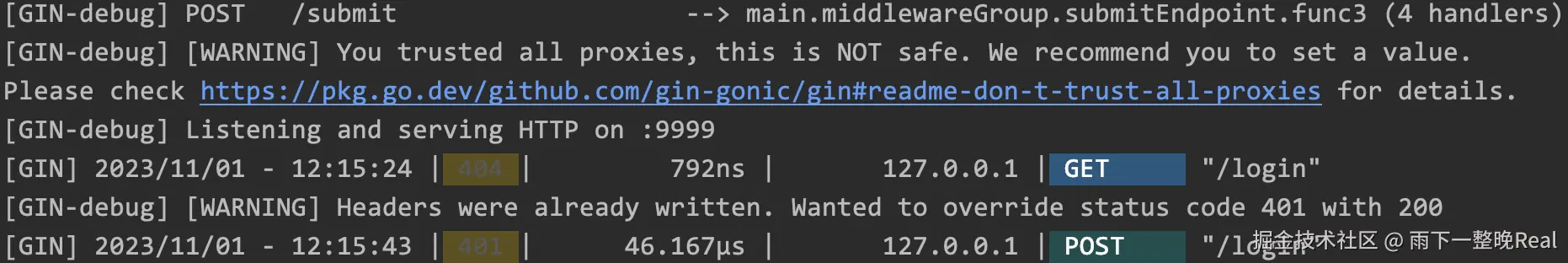 - 发现 Gin 在监听 HTTP 请求时,一个 main 方法中,只能启动一个实例且只能监听一个端口。
