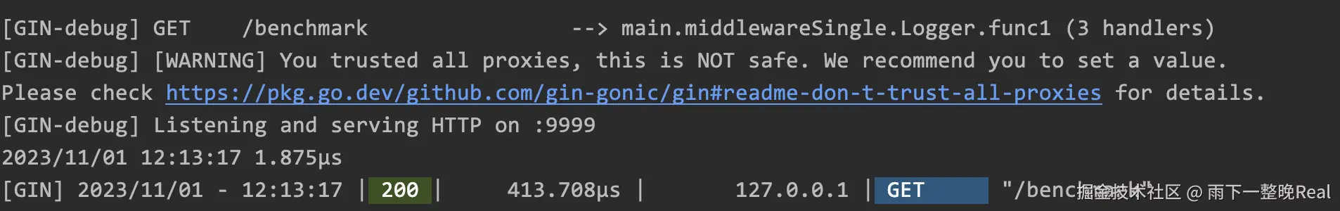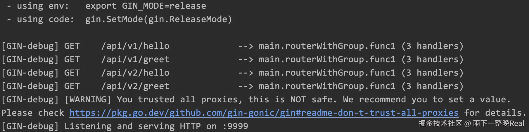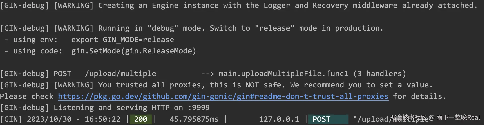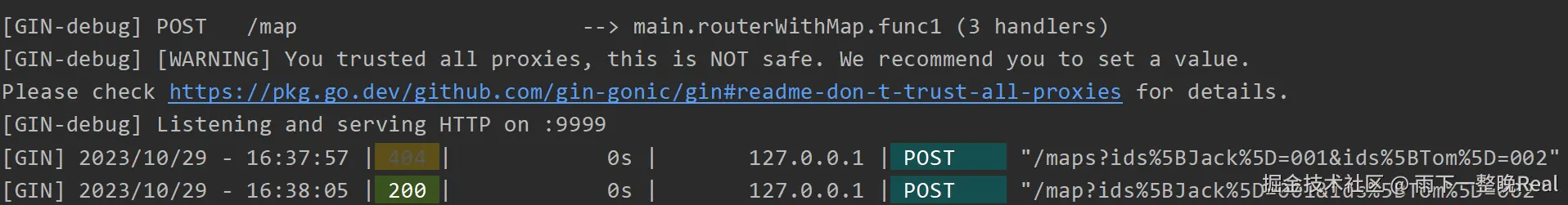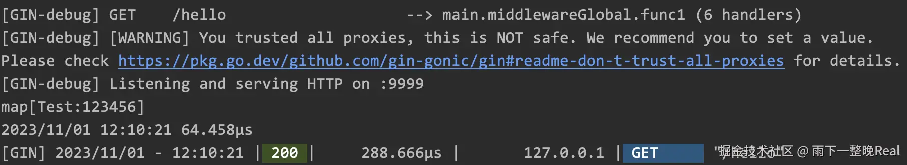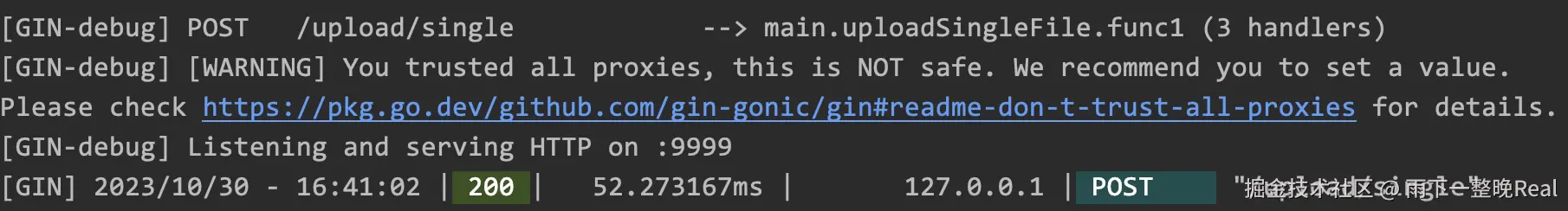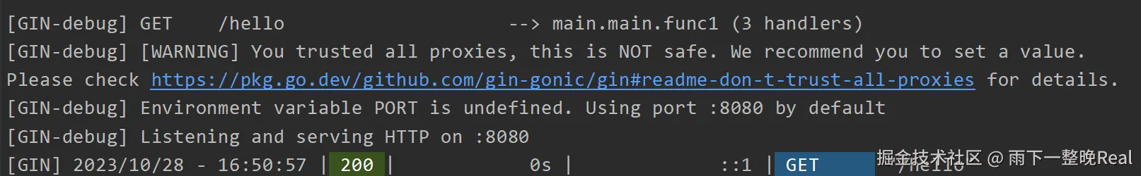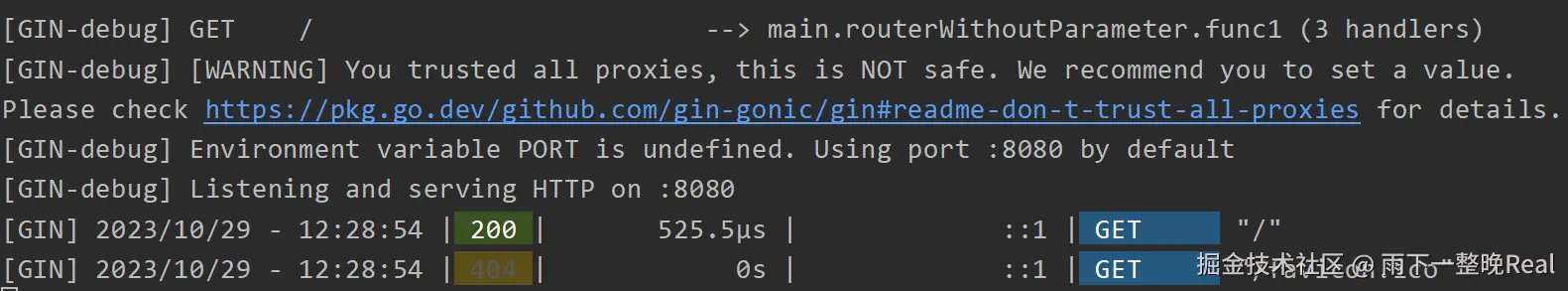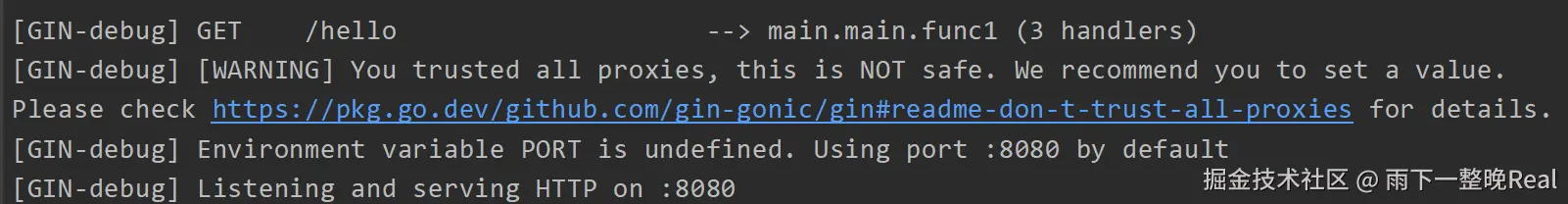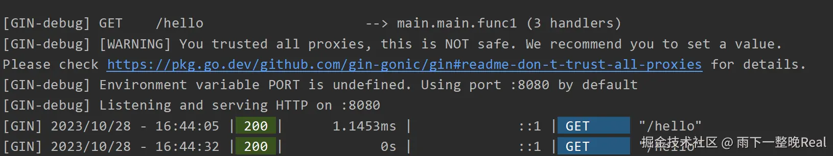 运行之后,可以看到 Gin 在 Console 控制台的输出结果: