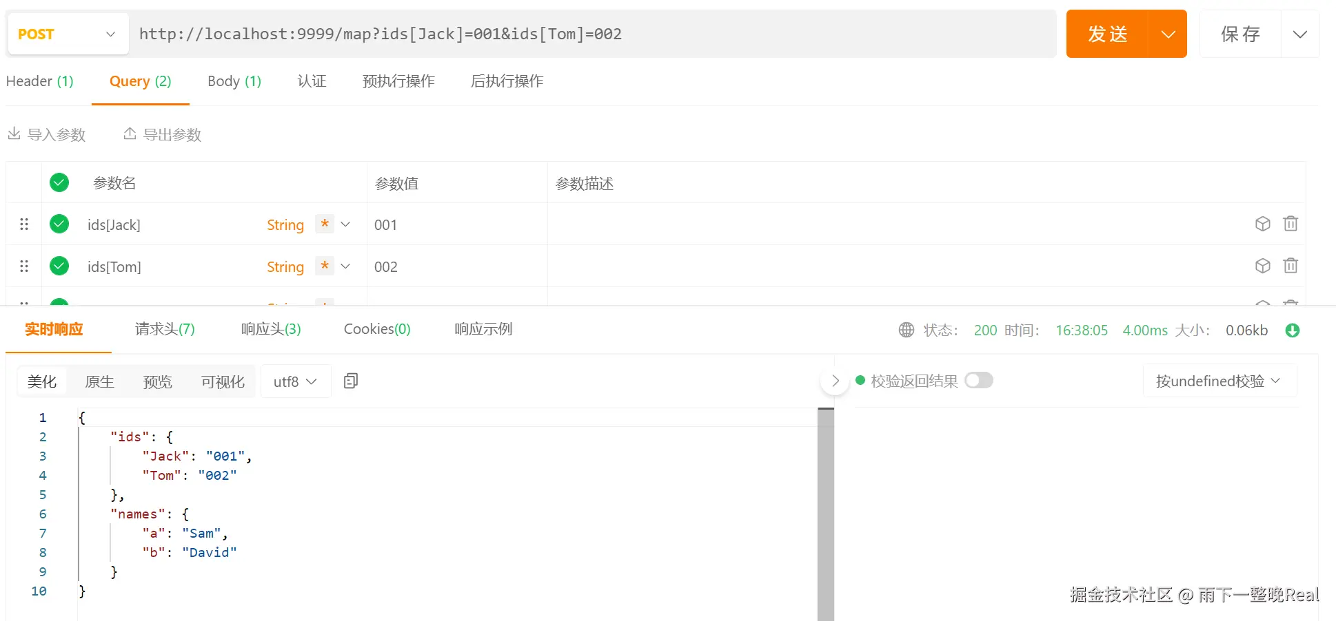 上述方式,是对于 Get 请求的处理。Post 请求参数通常是以表单的形式提交的,所以对于这部分请求的处理,与 Query 不一样。