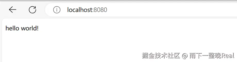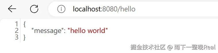 在浏览器访问 [**http://localhost:8080/**](http://localhost:8080/)** **之后,可以看到输出的 String 字符串。