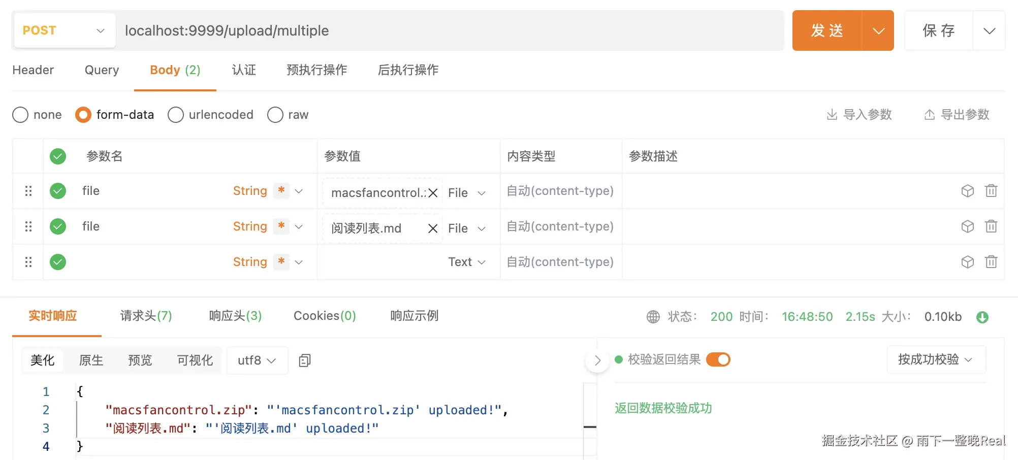 启动之后,同时上传多个 key 为 file 的文件,可以得到: