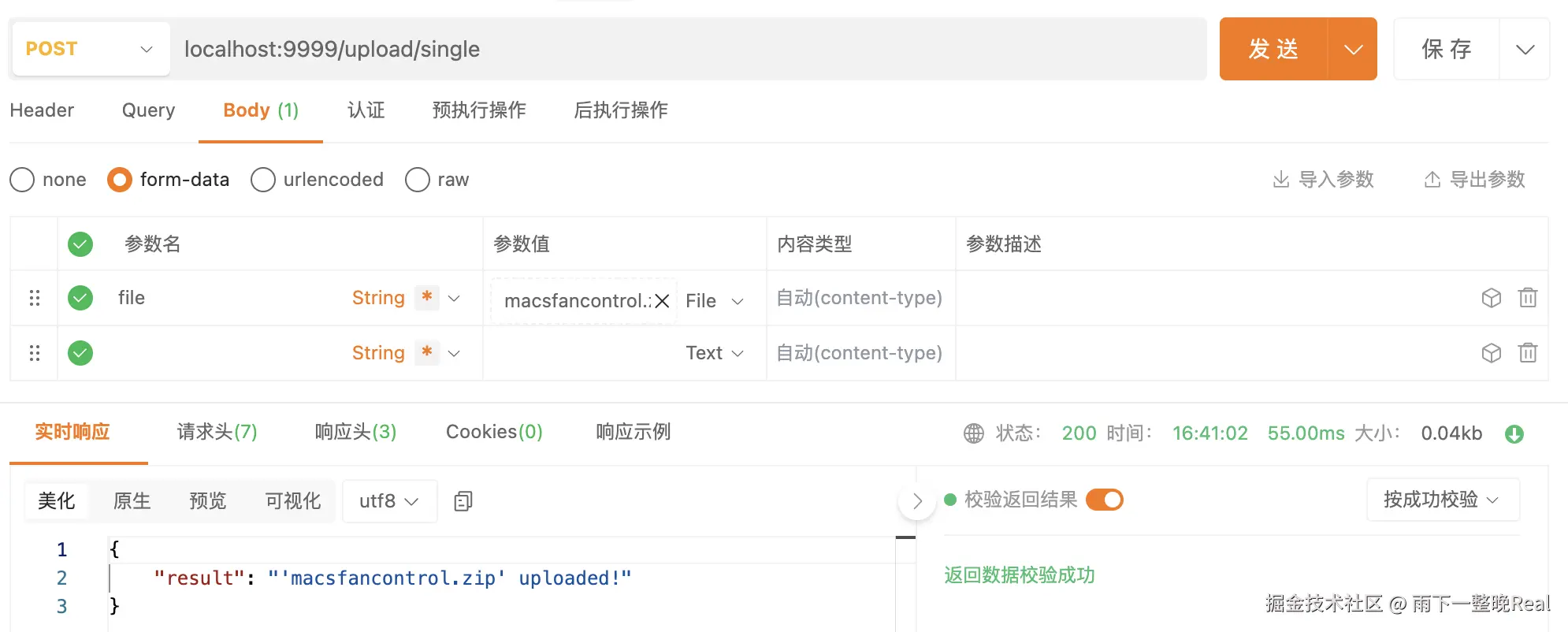 访问 [**http://localhost:9999/upload/single**](http://localhost:9999/upload/single)** **之后,上传文件,可以得到: