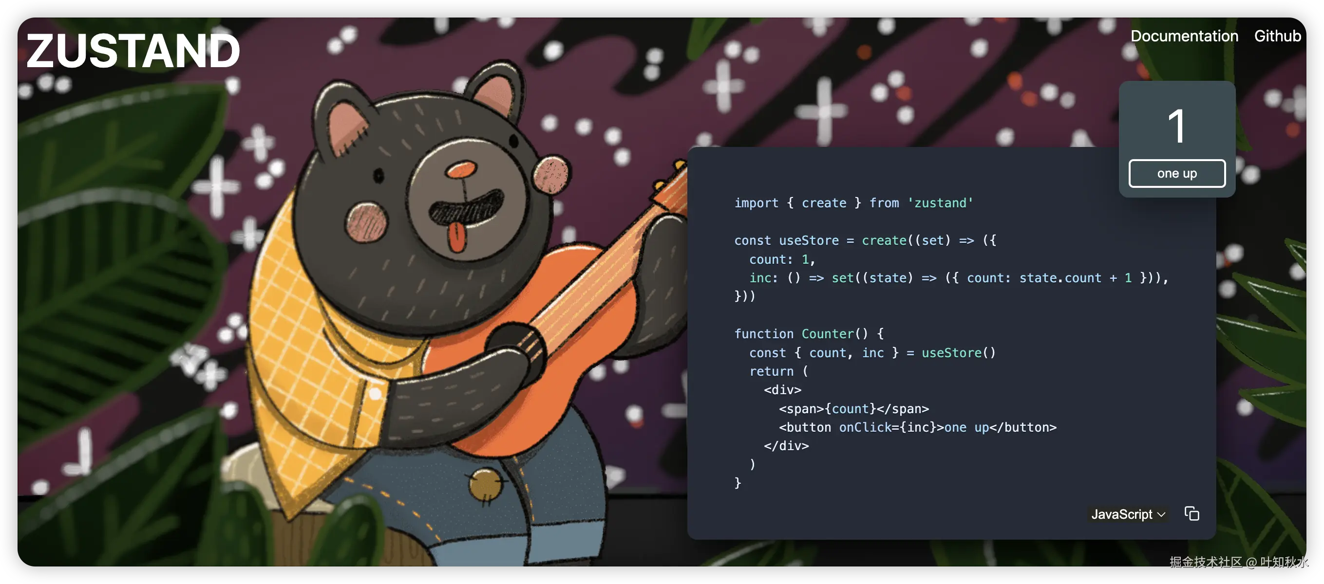 很好看的一个官网。(zustand-demo.pmnd.rs/)