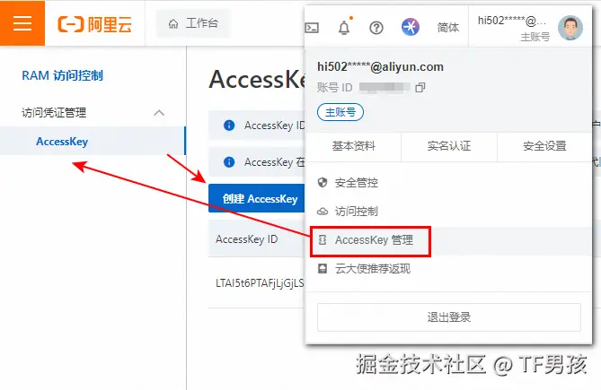 然后创建AccessKey。