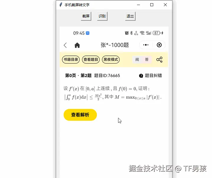 总结起来,就两步。第一步截屏保存,第二步识别显示。
