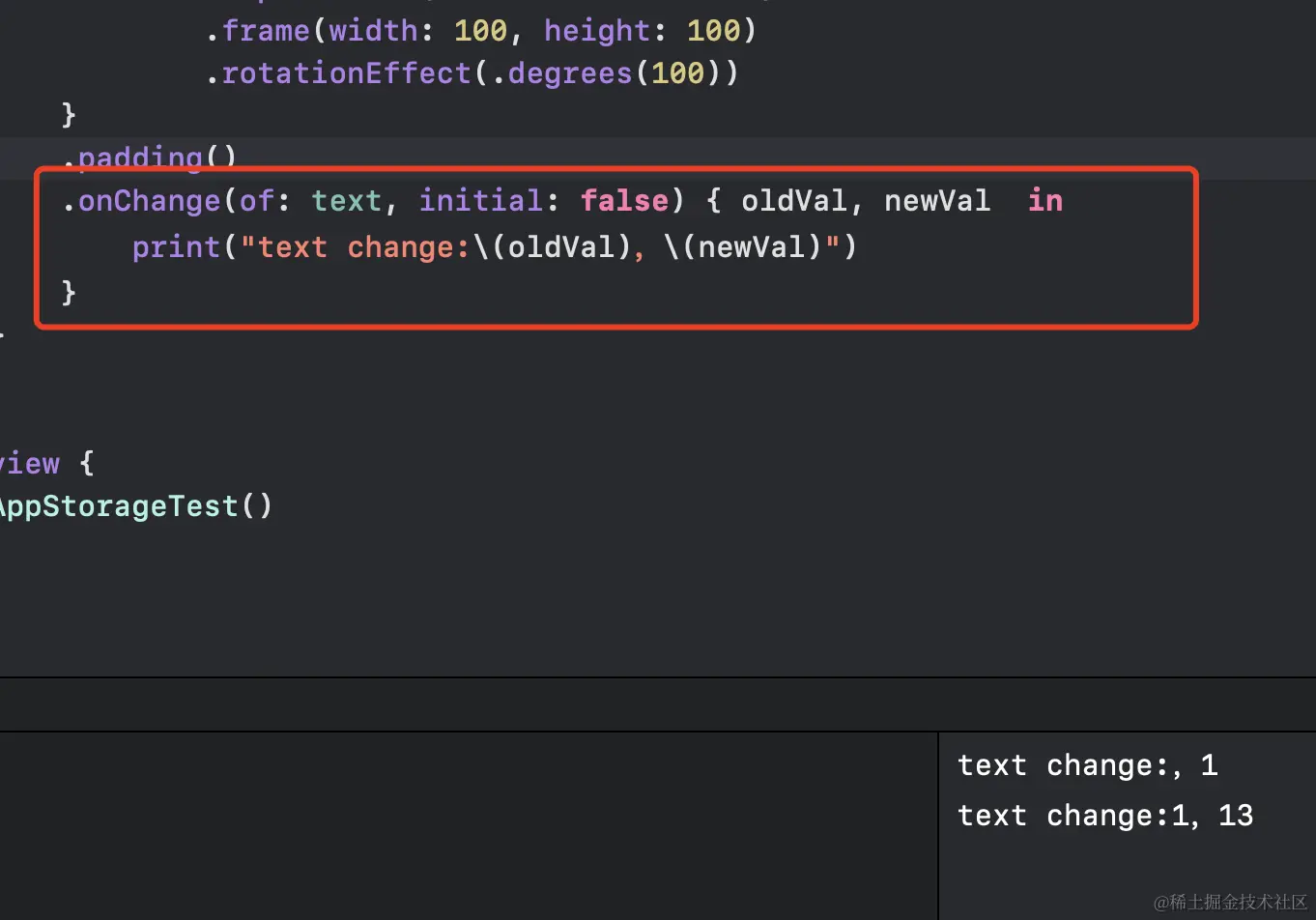 如果监听的值是一个复杂的对象(比如自定义类型的实例),则需要该对象遵循 Equatable 协议,onChange 才能正确检测到变化。