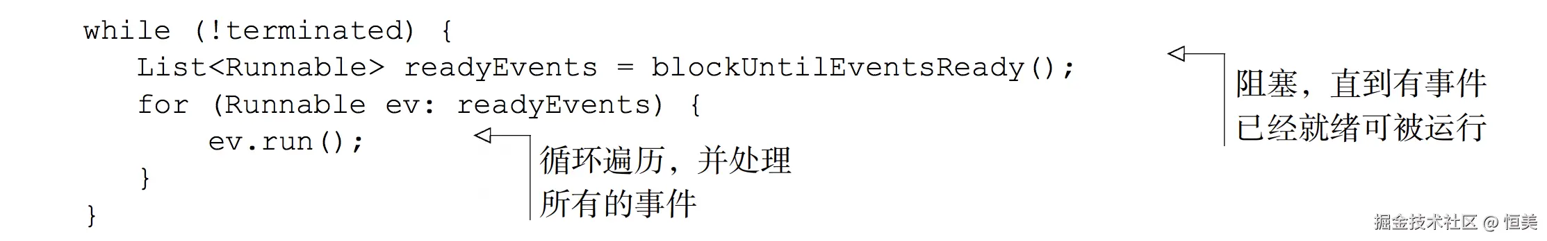 运行任务来处理在连接的生命周期内发生的事件。在代码中称为事件循环,即 io.netty.channel.EventLoop 。