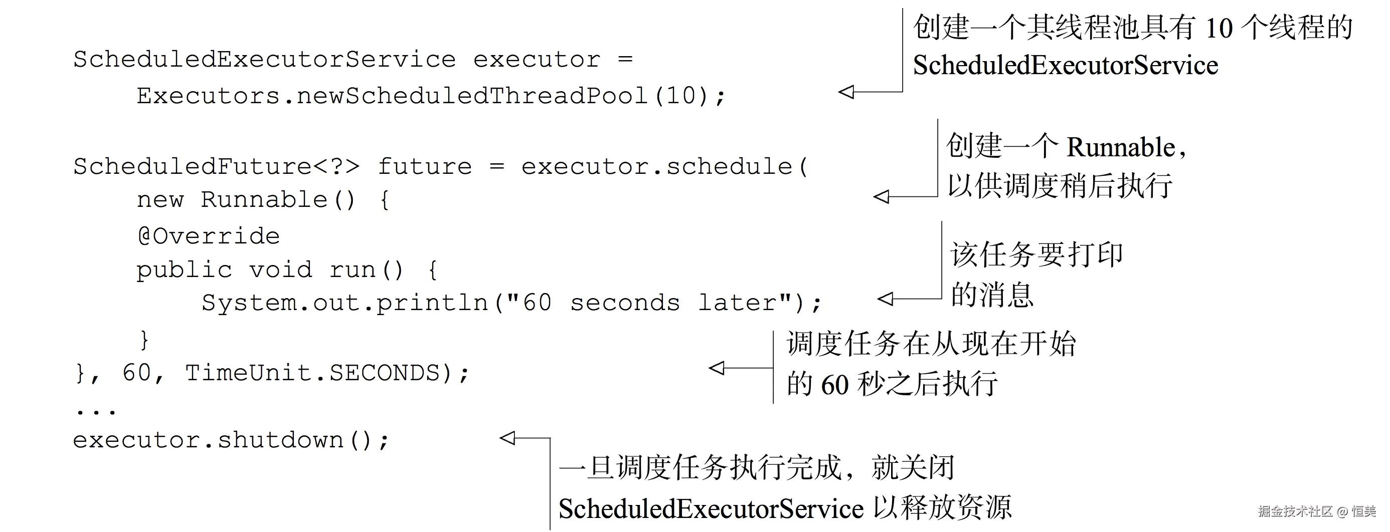 - 使用 ScheduledExecutorService 在 60 秒的延迟之后执行一个任务