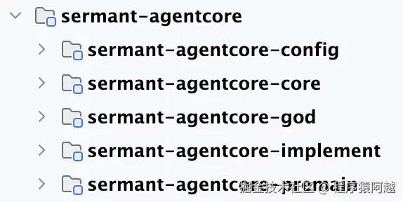 - implement,对应sermant-agentcore-implement,agent核心服务实现,如心跳、netty通讯、动态配置;