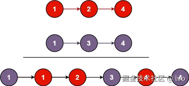 将两个升序链表合并为一个新的 升序 链表并返回。新链表是通过拼接给定的两个链表的所有节点组成的。