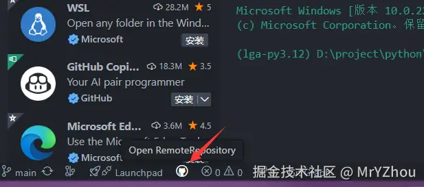 // 打开git仓库首页