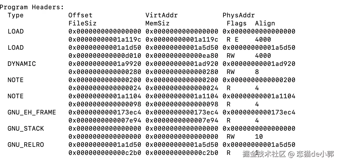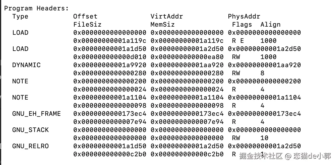 这里我们只关心 LOAD 段,因为一般只有 LOAD 段需要加载到内存中。
