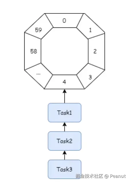 因此5.0采用了时间轮解决上述问题。时间轮不用遍历每个任务,而是每一个时间节点上的任务用链表串起来,当时间轮上的指针移动到当前的时间时,这个时间节点上的全部任务都执行。