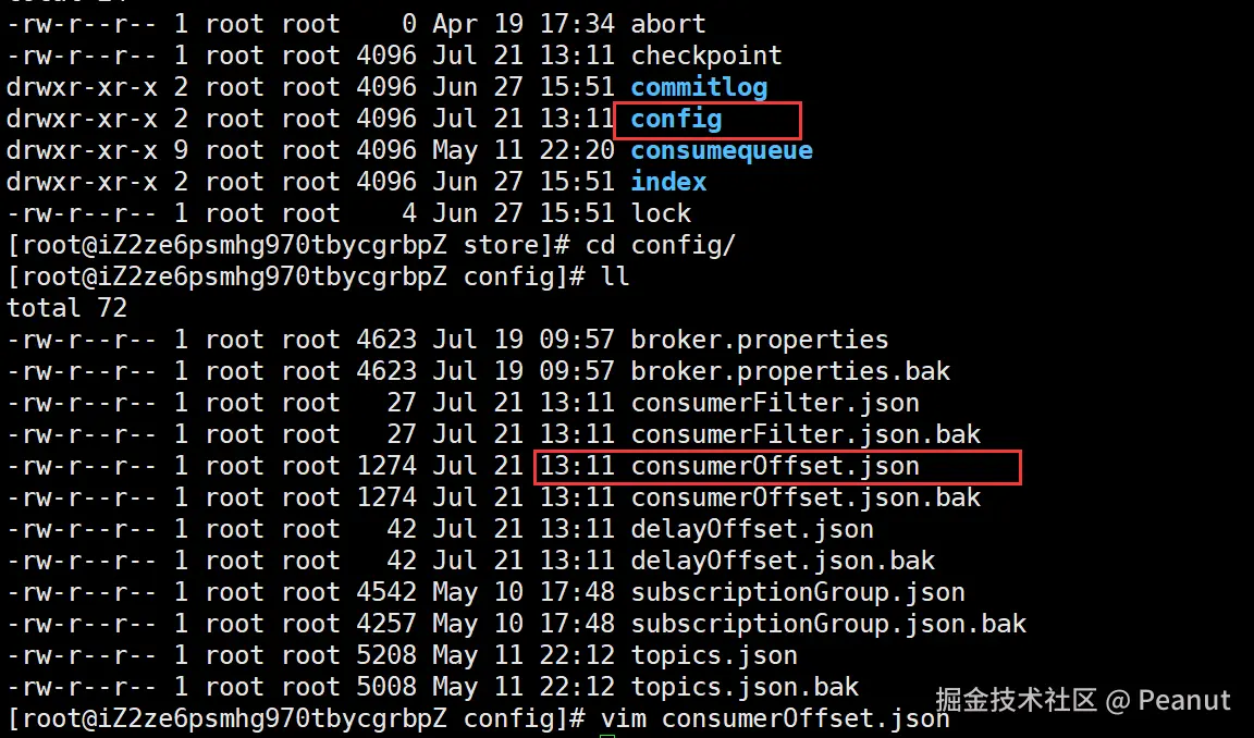 每个consumeQueue都有消费点位offset,这个点位存在哪个文件(扩展)?