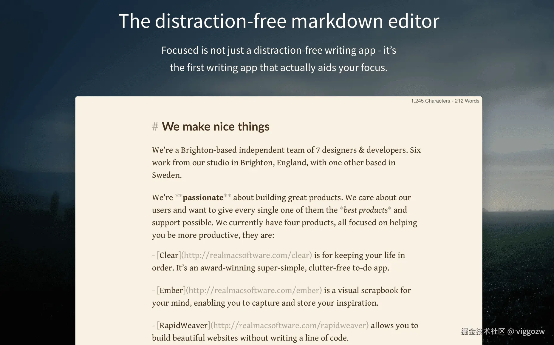 Focused 是一款简洁无干扰的 macOS 写作APP,有一个非常有趣的功能叫做 Zen Mode,它让你可以通过播放 8 首平静的自然配乐来过滤掉生活中的干扰,也就是自带白噪音功能。