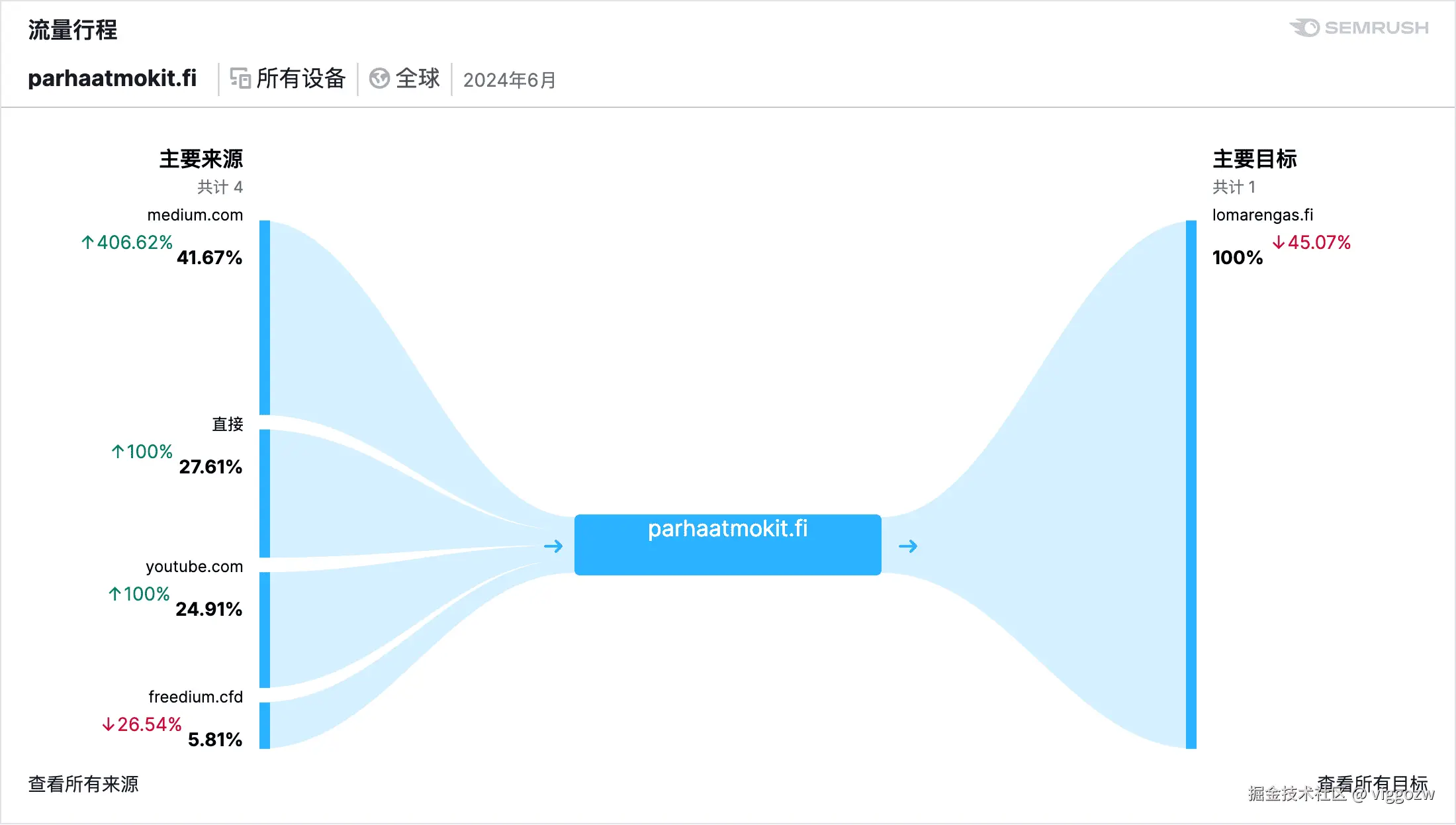 这篇文章介绍了一个简单的租赁小屋搜索网站,作者通过营销和联盟营销的方式获取用户,并分享了他用Google作为免费流量来源的策略。文章强调了营销的重要性,写代码只占很小一部分时间,大部分时间花在了推广上。我在SEMRUSH上看到这是这个网站的流量行程,等于是做了一个中转站,这种类型的项目还是挺多的,另外作者写这篇文章带来了差不多一半的流量。但是这种非常精准的关键词优化可能确实是有效果的。
