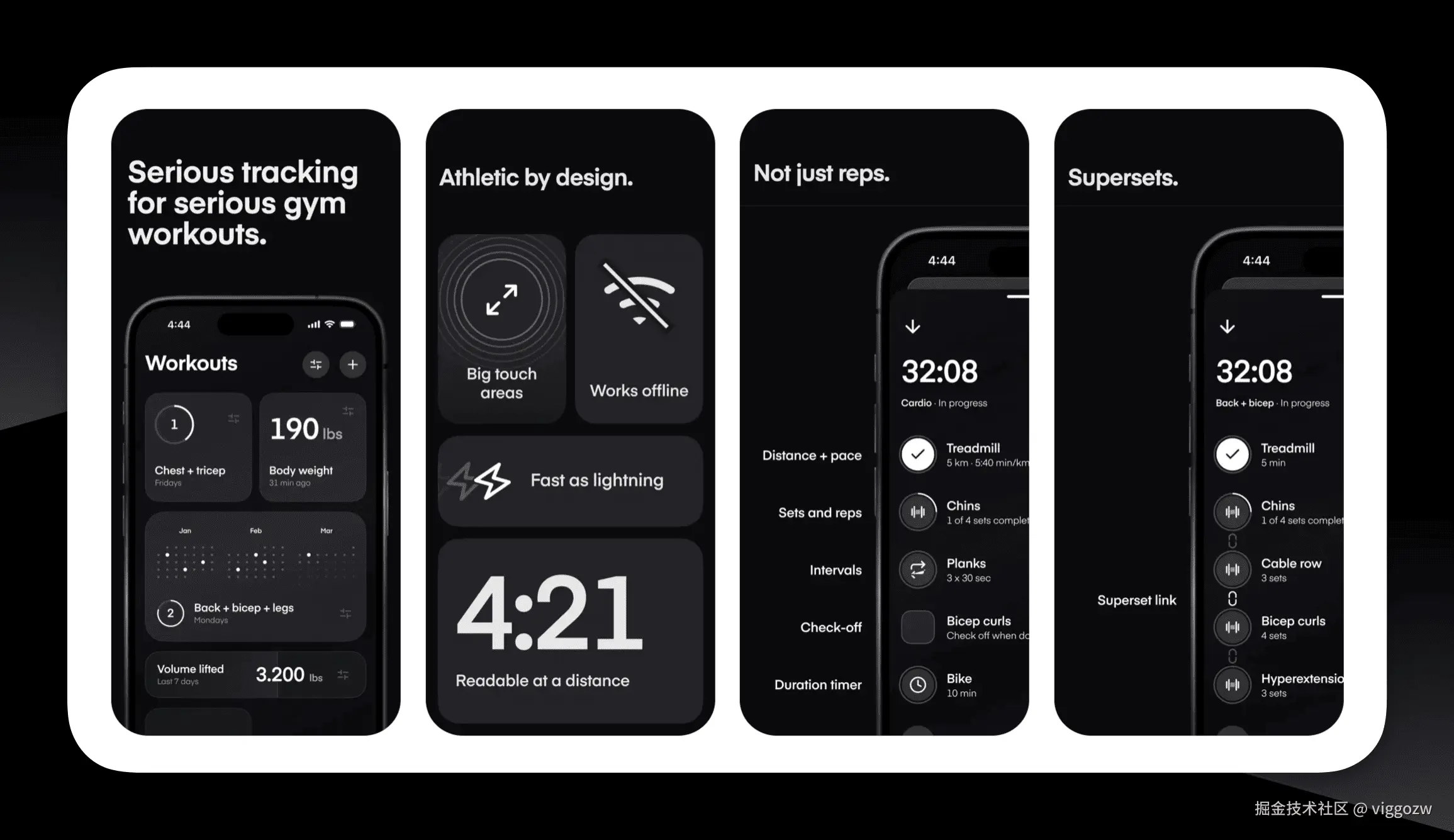 一个设计的很好看的健身记录APP,黑白风确实很好看,简洁舒服,很小众了。