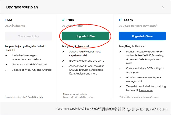 登录账号后选择左上角开通个人版的GPT4.0(20美元一个月的那个,不要选错了)
