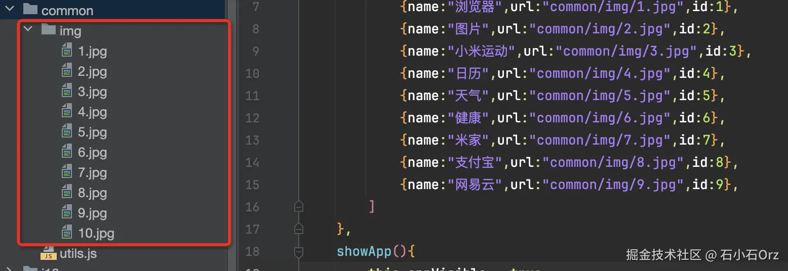 为了代码更加简洁,我们维护一个数组,里面包含app的图片信息,然后我们用hml的列表渲染方法优化代码。