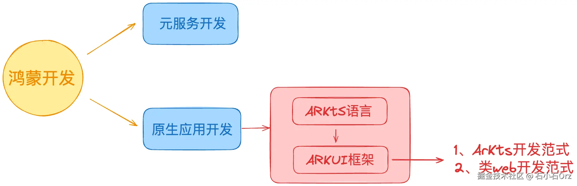 简单来说,对于简单的app,前端同学可以使用类Web开发范式直接上手, 对于大型复杂app,我们需要使用ArkTS原生语法编写。